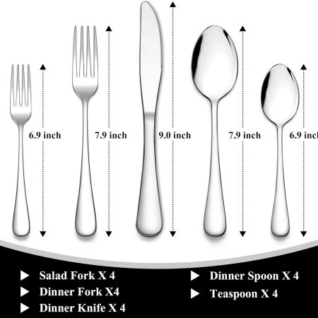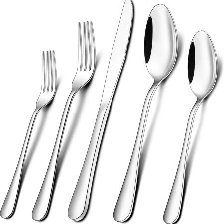 Wildone 20-Piece Silverware Set, Stainless Steel Flatware Cutlery Set Service for 4, Tableware Eating Utensils Include Knife/Fork/Spoon, Mirror Polished, Dishwasher Safe