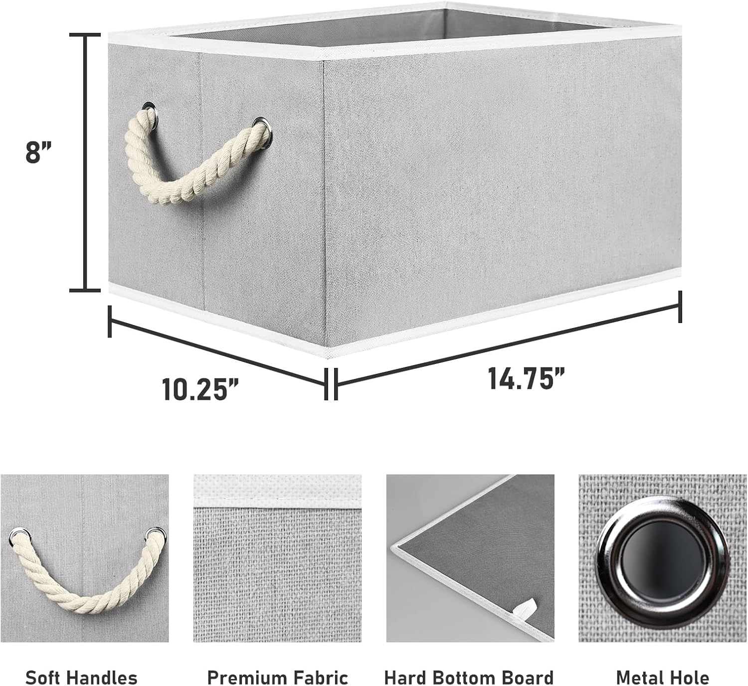 Crafted with high-quality fabric in a sleek grey color, these Linen Storage Boxes add a touch of sophistication to any room. The decorative design and rope handles make these Storage Bins not only functional but also a stylish addition to your shelves, closet, or living space.